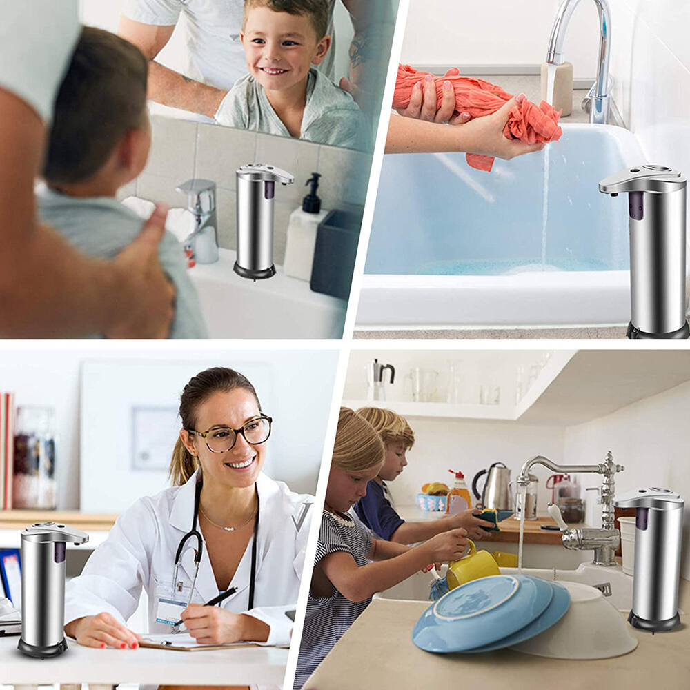 Dispensador de jabón automático funciona con una avanzada tecnología de sensor infrarrojo inteligente que elimina la necesidad de tocar el dispensador de jabón. Proporciona el líquido rápidamente. Esto hace que lavarse las manos sea más fácil e higiénico, y el dispensador de jabón sin contacto evita que las manchas queden en el dispositivo, protegiéndote de infecciones bacterianas