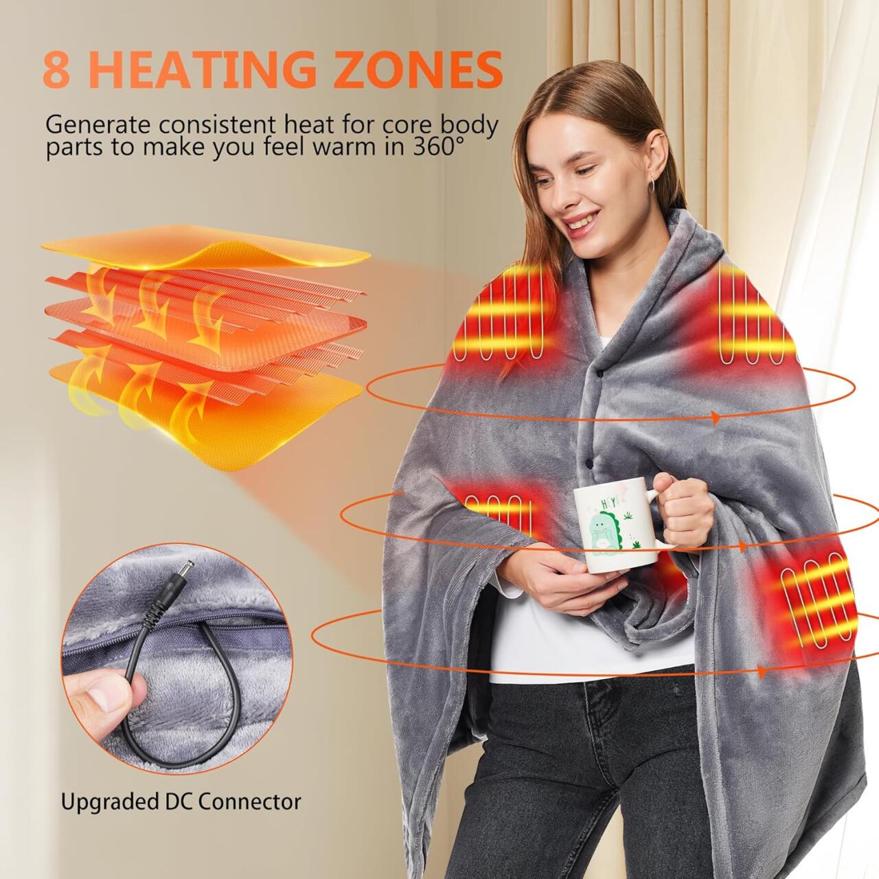 - Comodidad Todo el Día: Gracias a la batería recargable de 16,000 mAh, no te quedarás sin calor cuando más lo necesites. Hasta 7 horas de uso continuo.