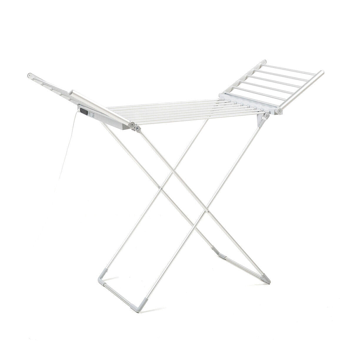 Este tendedero eléctrico plegable con alas acelera el secado de la ropa con sus 20 barras calefactadas. Ideal en invierno, días de lluvia o humedad.